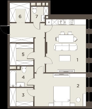 Двухкомнатная квартира 83.01 м² в ЖК «Мостман (The Mostman)»